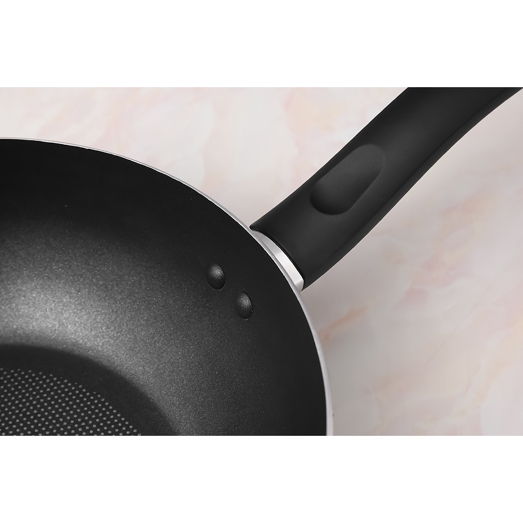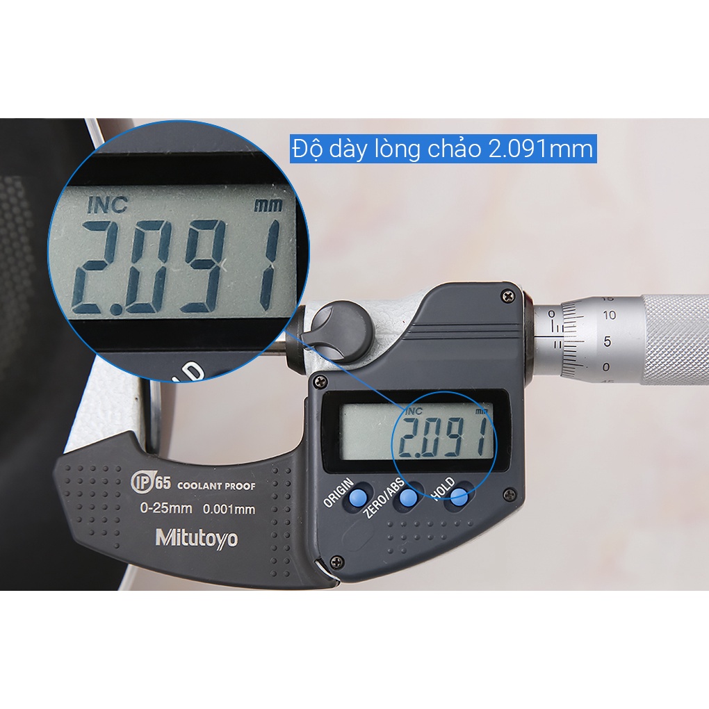 •Chảo chất liệu hợp kim nhôm dày 2.091 mm bền bỉ, hạn chế biến dạng do va đập. Bề mặt lòng chảo là lớp chống dính phủ sơn Titanium, chịu nhiệt tối đa trong khoảng 380 - 400 oC hạn chế cháy dính, an toàn sức khỏe.. Khối lượng chảo nhẹ chỉ 0.7 kg giúp dễ di chuyển linh hoạt trong bếp.