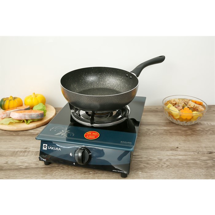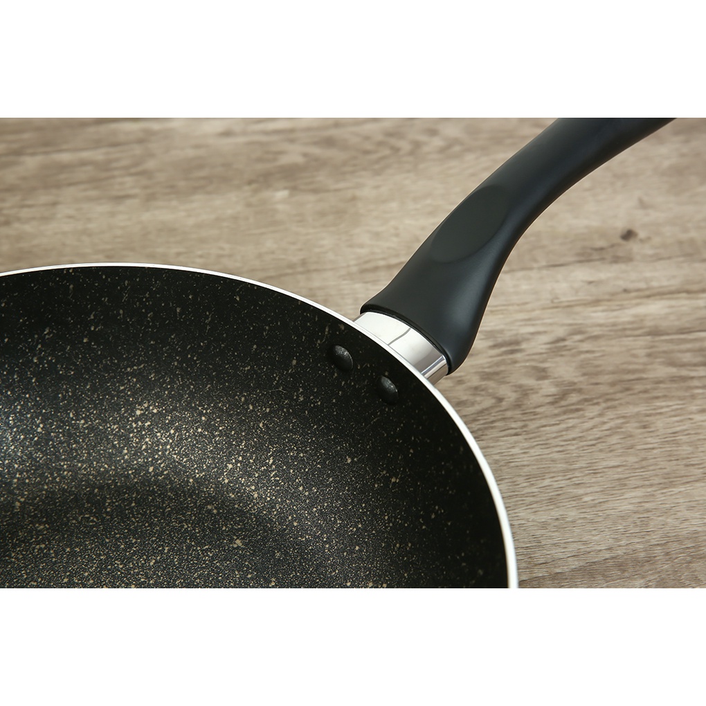 •Chất liệu hợp kim nhôm dày 2.173 mm, phủ chống dính Whitford (USA) vân đá hoa cương an toàn cho sức khỏe. Thức ăn không bám dính, độ bền cao, dễ vệ sinh sau khi sử dụng.