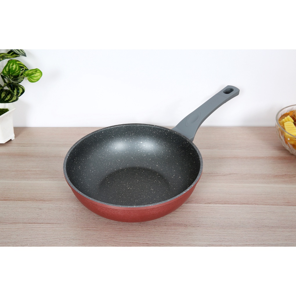 •Chảo có đáy phẳng bằng nhôm đúc chắc chắn gia nhiệt nhanh và đều, có lớp inox 430 gia tăng hiệu quả bắt từ