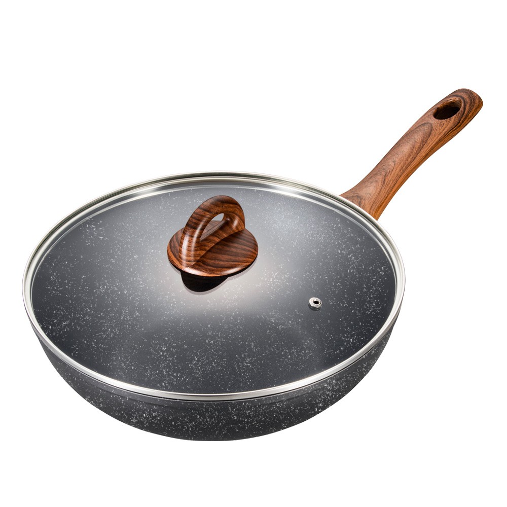 Giới thiệu [Mã LIFEHL25 giảm 10% đơn 350K] Chảo nhôm sâu lòng chống dính BAUM Marble 28cm,nắp thủy tinh Lock&Lock LBU1285