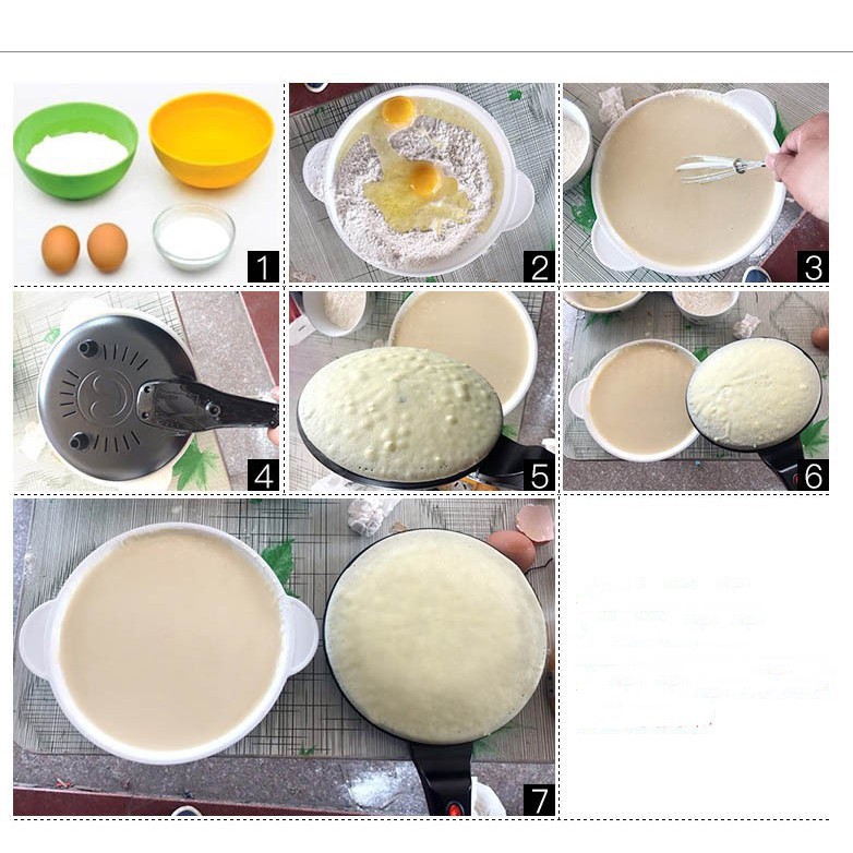 Bộ sản phẩm gồm Chảo điện/dụng cụ đựng bột/dụng cụ đánh trứng bột