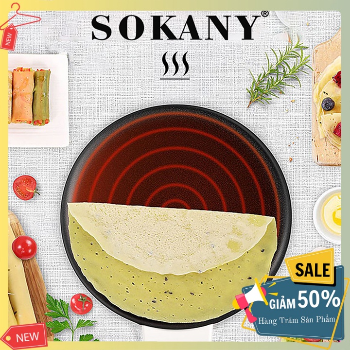 ⛵ Máy làm bánh crepe Sokany model mới nhất hiện tại của hãng, chảo có độ chống dính tốt. Mỗi máy đi kè 1 tô đựng bột.