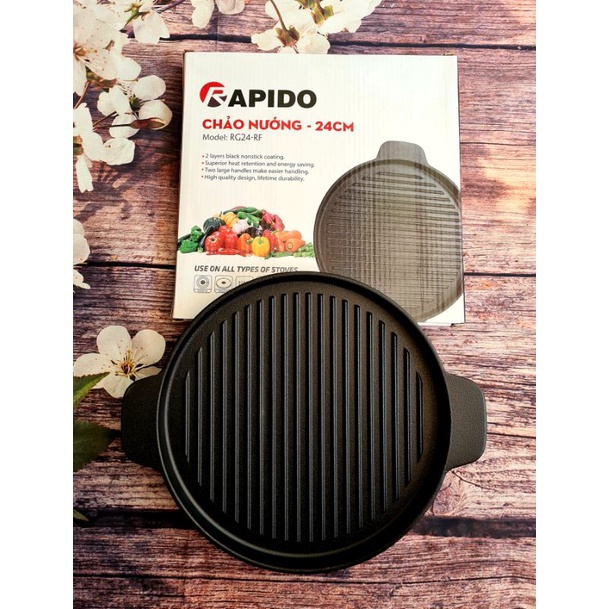 Giới thiệu Chảo nướng BBQ gang đúc, chống dính Rapido 24 và 26cm, mã RG-RF