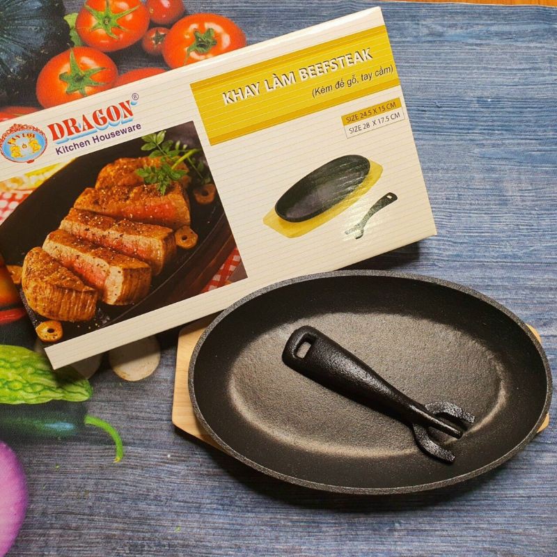 Chất liệu Gang phủ chống dính an toàn vệ sinh thực phẩm.Kích thước 24.5x 15 cm