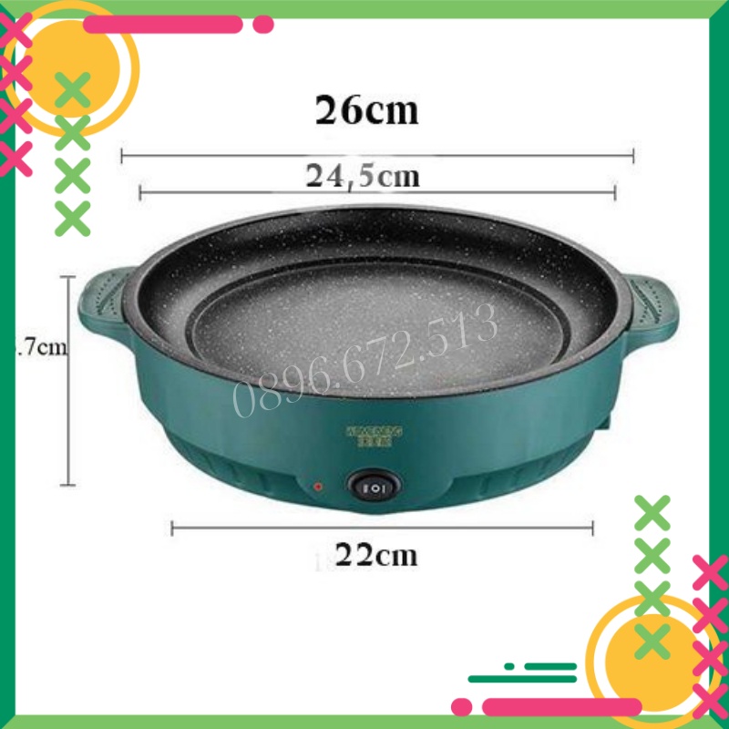 Chảo Nướng Điện Mini Chống Dính Đa Năng 26cm Bếp Nướng Điện Không Khói BBQ Hàn Quốc Cực Nhanh