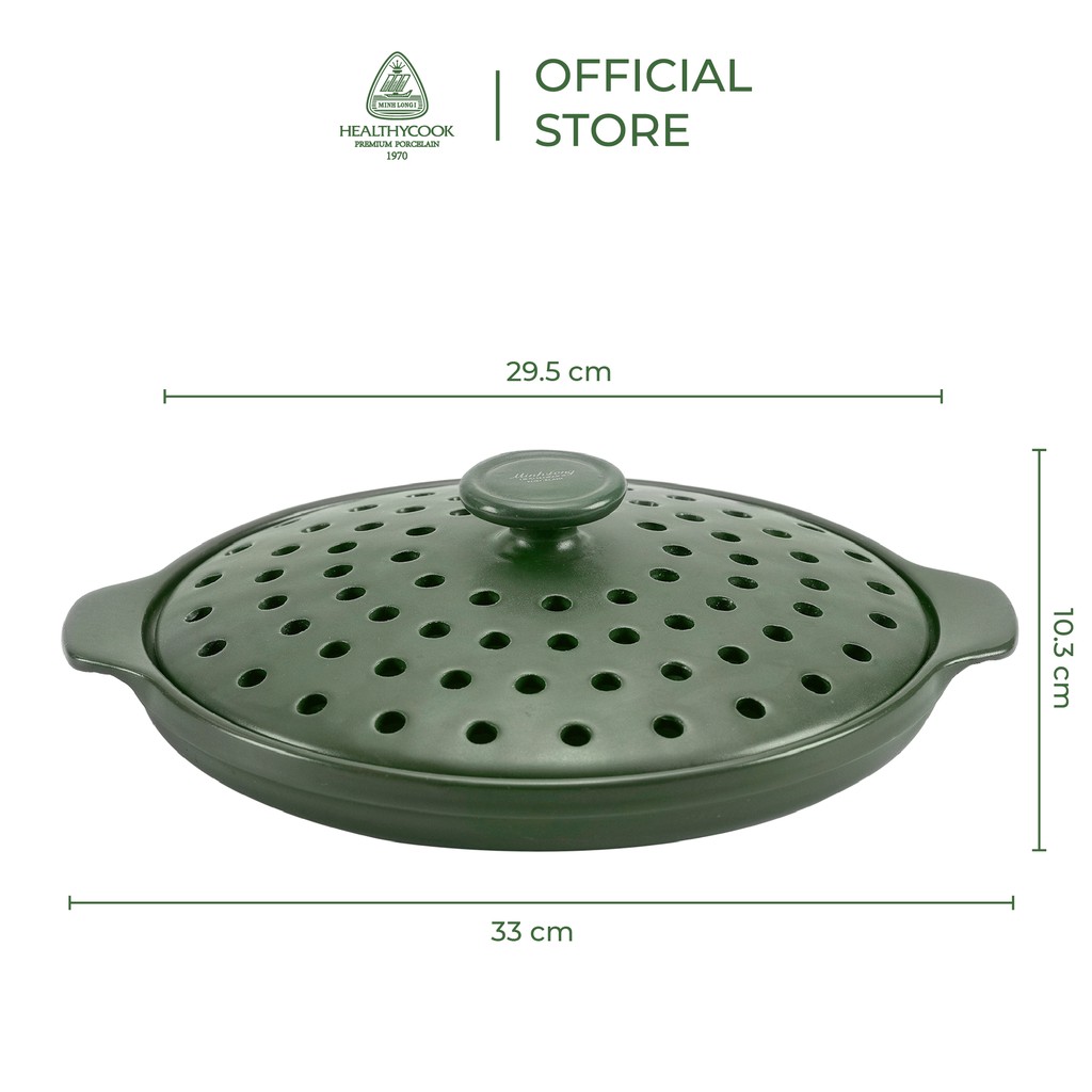 Chảo nướng dưỡng sinh 34 cm + nắp có lỗ - HealthyCook - Xanh rêu"