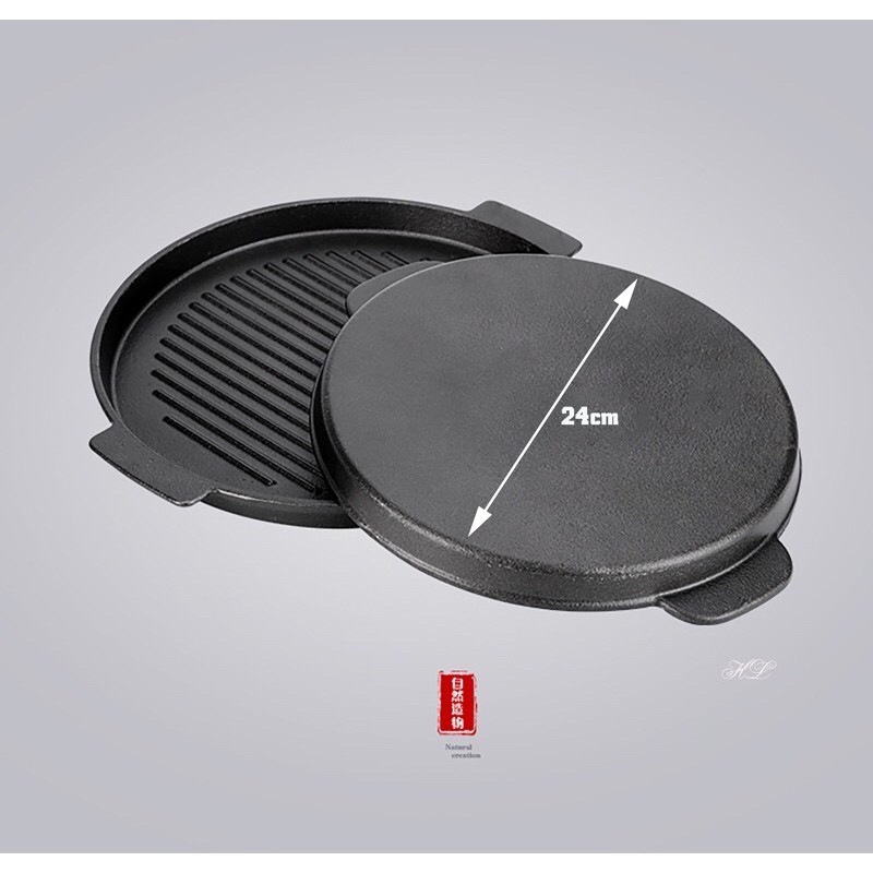 Chảo nướng gang đen tròn 3 cỡ 20 cm 22 cm 24 cm chống dính cao cấp