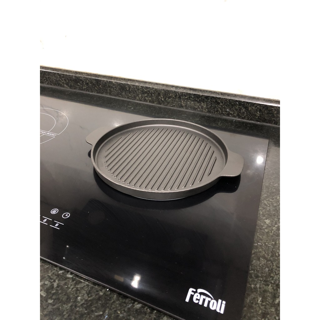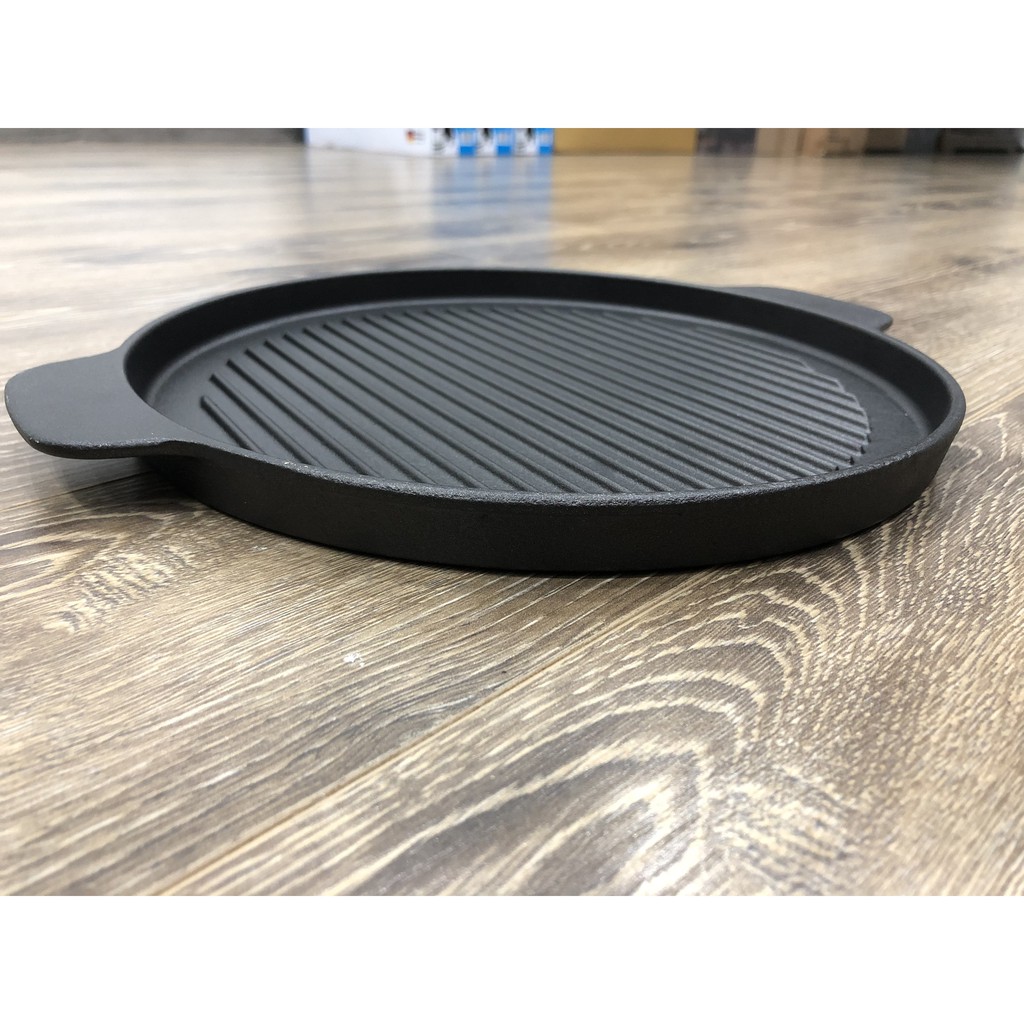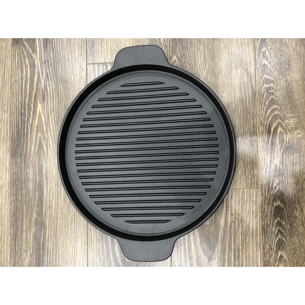 - Chảo nướng bằng gang dùng trên mọi loại bếp: bếp từ, hồng ngoại, gas, cồn, than củi, cho vào lò nướng dung tích lớn
