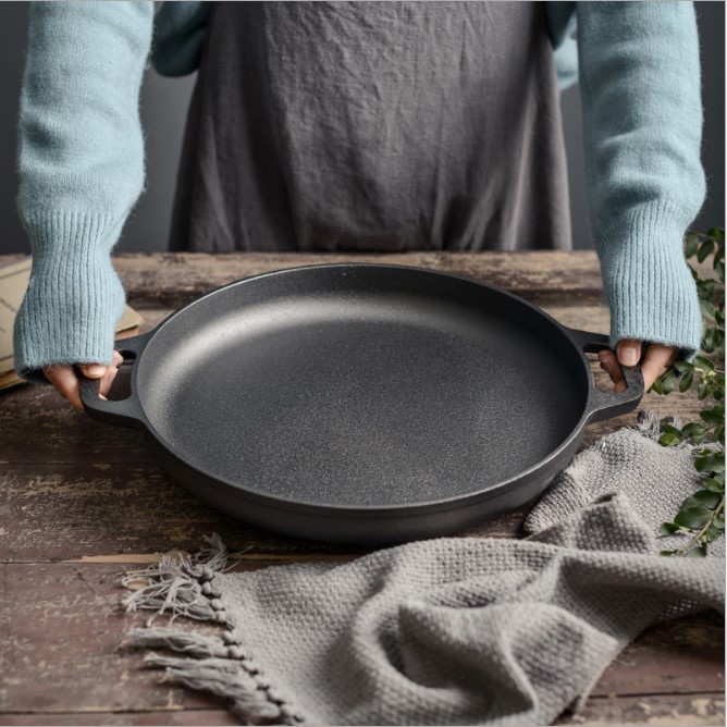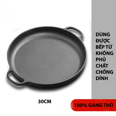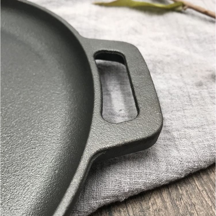 Chảo Gang Nướng Thịt BBQ Bánh Xèo Pizza Chống Dính Tự Nhiên 28cm Đáy Phẳng Kiểu Nhật Dùng Được Bếp TừChảo đáy phẳng kích thước 28cm nặng 2kg