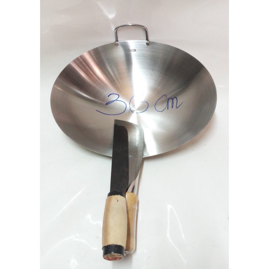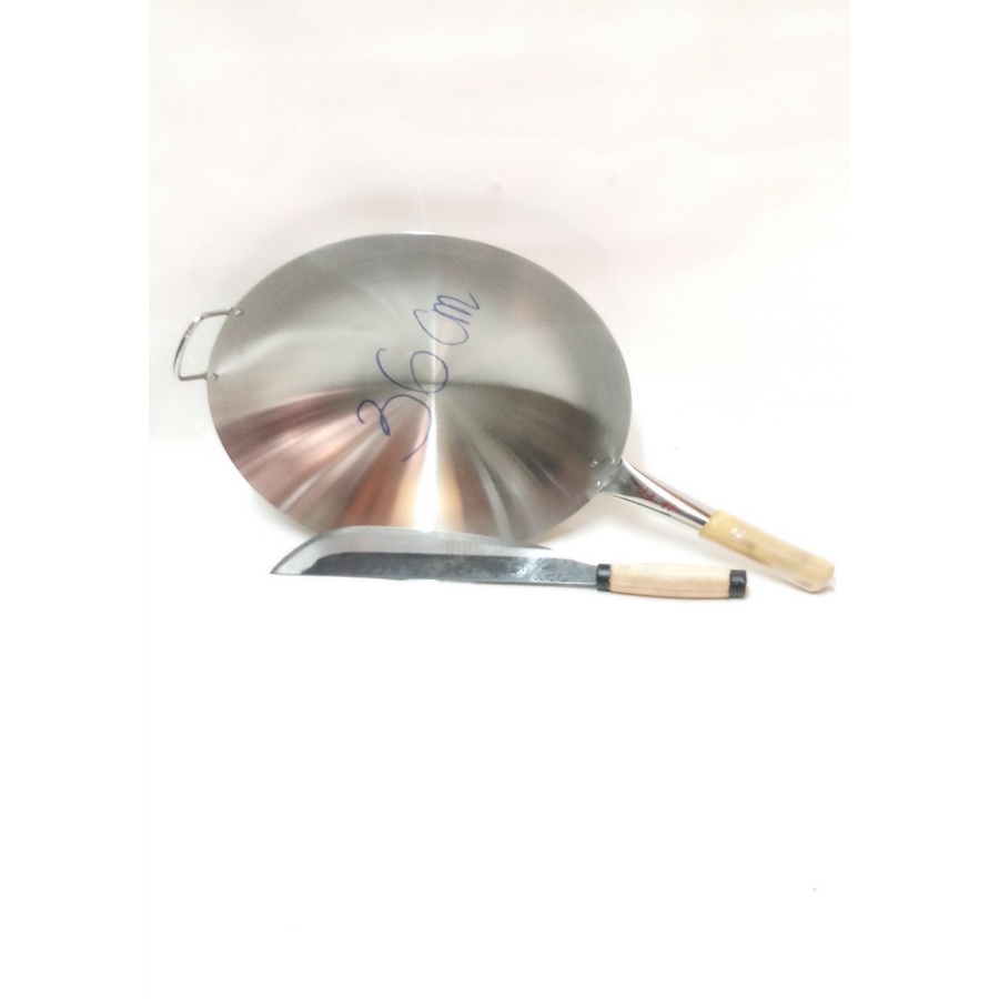 CHẢO (QUÁNH)INOX CÁN GỖ 36CM TẶNG KÈM 1 DAO PHAY.
