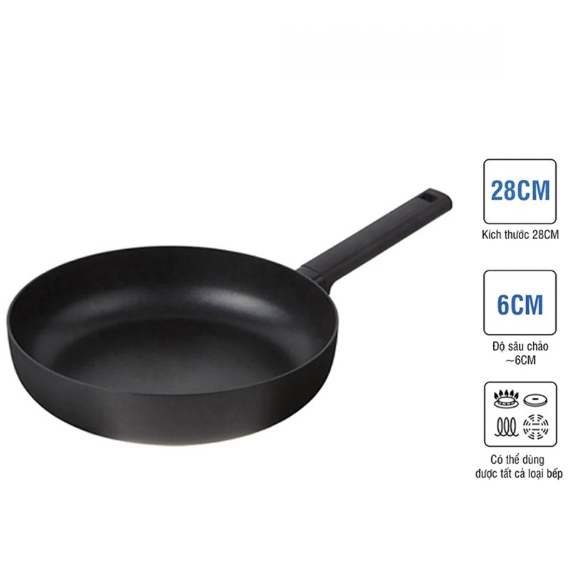 Công nghệ nung cảm ứng điện từ (IH), chảo có thể sử dụng trên tất cả nguồn nhiệt như bếp từ, bếp ga, bếp hồng ngoại