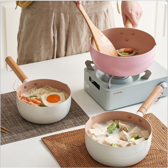 Chảo Sâu Lòng Chống Dính 18cm Cán Gỗ Tiện Dụng Chiên, Xào,Nấu , Nồi Nấu Bột Cho Bé Tiện Lợi