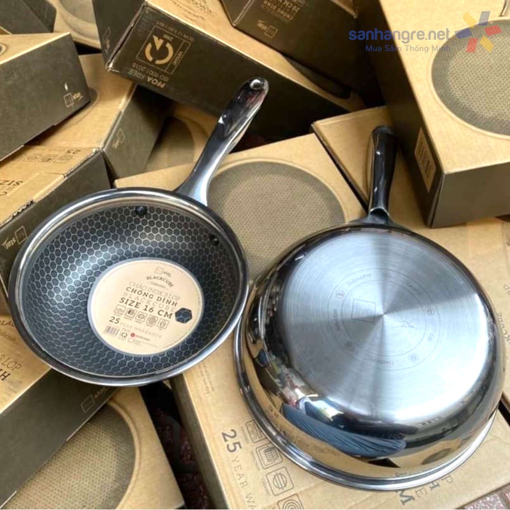 - Chảo inox sáng bóng phủ lớp chống dính siêu bền an toàn cho sức khỏe.