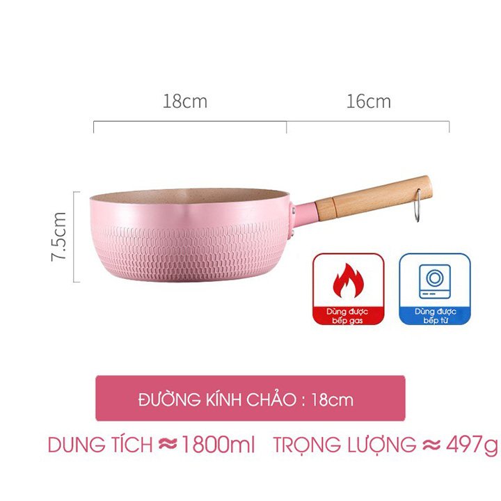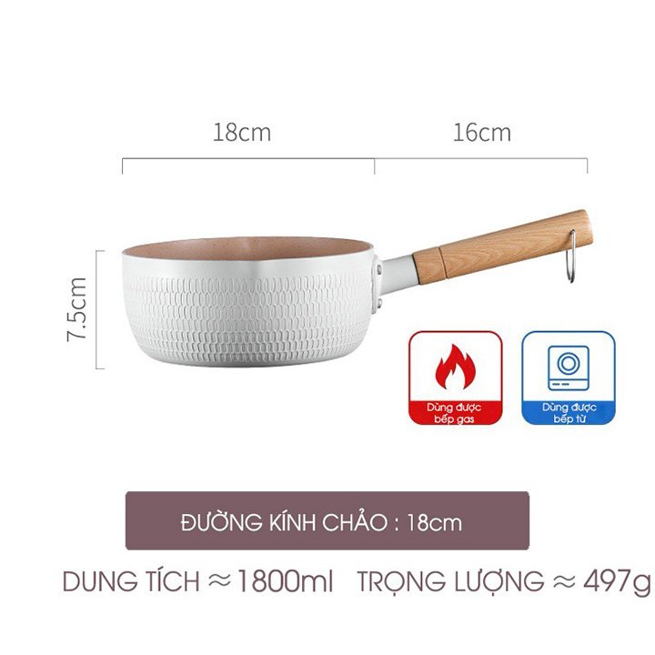- Với chảo chống dính sâu lòng 18cm giúp cho việc nấu ăn được dễ dàng, từ việc chiên, xào đến nấu bột cho bé.