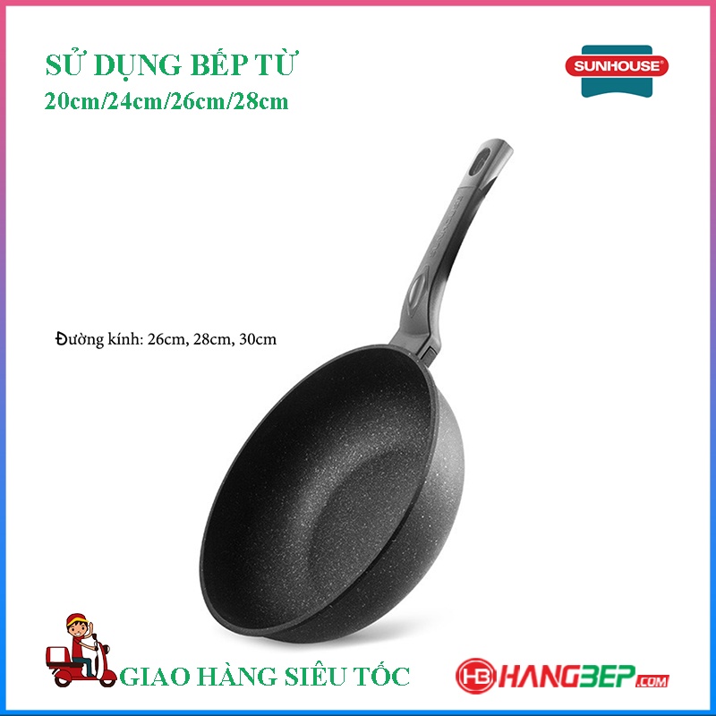 Chảo sâu lòng chống dính đá hoa cương 26cm,28cm,30cm Sunhouse SBDS26,SBDS28,SBDS30