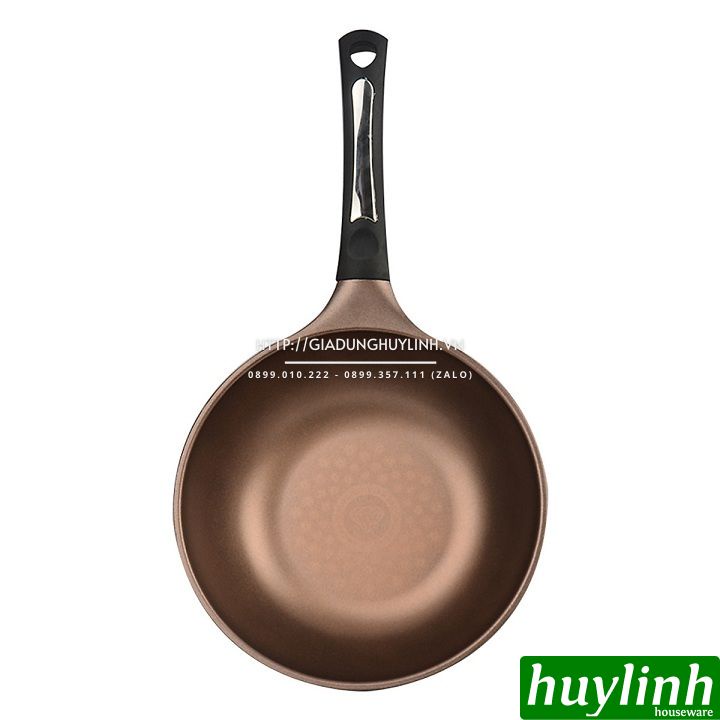 - Sâu lòng, đáy phẳng, tay cầm cách nhiệt có lỗ treo tiện dụng