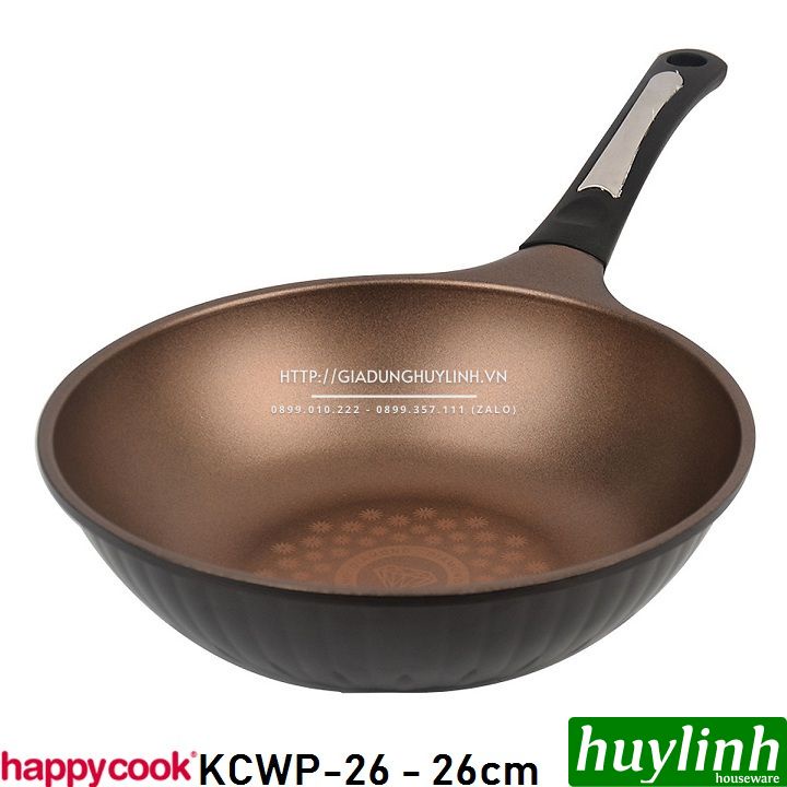 - Chảo sâu lòng chống dính kim cương 26cm Happy Cook KCWP-26 được thiết kế theo thị hiếu mới nhất của thị trường Hàn Quốc nên mang đến cảm giác hiện đại, sang trọng trong gia đình. Chảo có đường kính 26cm, sâu lòng, thích hợp để làm các món ăn cần chiên ngập dầu cho gia đình từ 4-6 người như chiên cá, chiên thịt, làm trứng ốp la, xào rau…