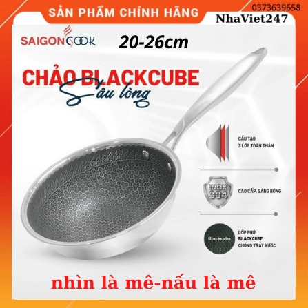Chảo Chống Dính Sâu lòng-Saigoncook-Blackcube Prime X3-Inox 304-3 lớp-chống trày sước-siêu bền,đẹp,chính hãng-giá rẻChảo Blackcube Prime Saigoncook có thiết kế sâu lòng, đa dạng kích thước từ 20-26 cm phù hợp cho mọi gia đình khi có thể chế biến đa dạng món ăn từ chiên, rán đến các món xào.hạn chế ,không tốn dàu mỡ