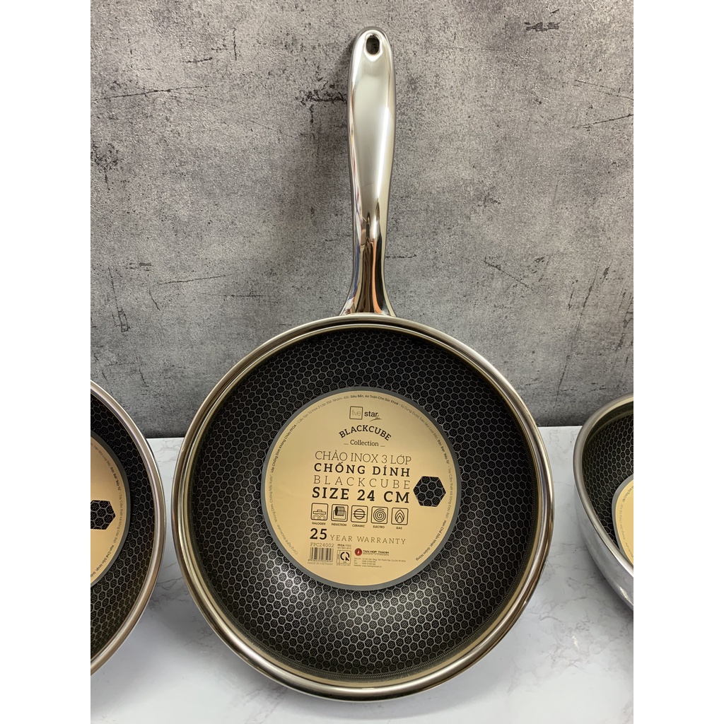 ✅ Chảo chống dính cao cấp BLACKCUBE FIVESTAR 3 lớp đáy liền inox 304 siêu bền , chống trầy xước