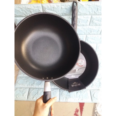Chất liệu làm chảo là Aluminum nên nhẹ giúp các bà nội trợ không bị đau, mỏi cổ tay, dễ dàng sử dụng và vệ sinh.