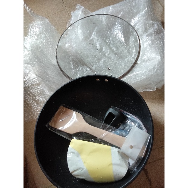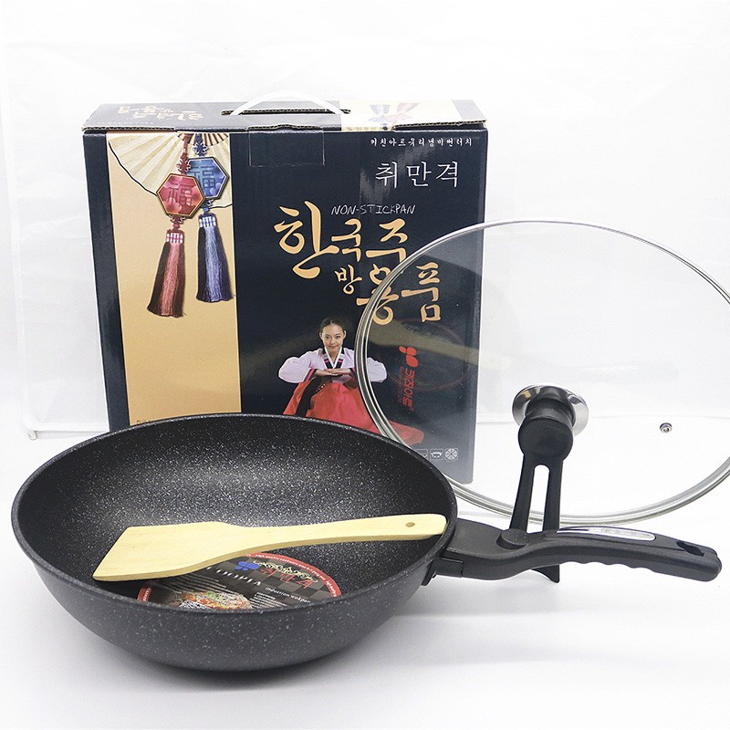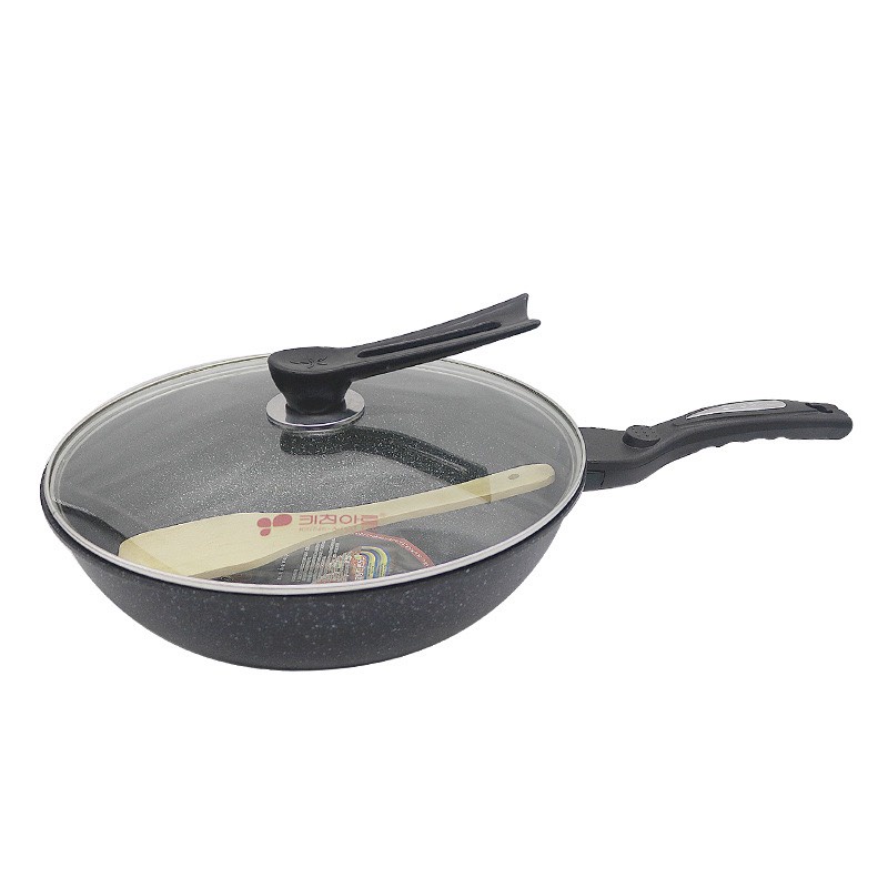 Giới thiệu Chảo Sâu Lòng Chống Dính Vân Đá Coopia Hàn Quốc Có Nắp Kính Size 30cm - Tặng Kèm Thìa Gỗ