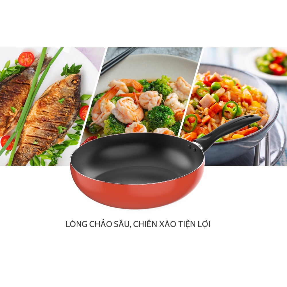 . Lòng chảo sâu tiện dụng giúp người dùng không lo về việc bắn dầu, hoặc thực phẩm ra bên ngoài khi sử dụng. Chảo không chỉ dùng để chiên rán, xào mà còn có thể nấu nhiều loại thức ăn khác như súp, nấu canh, luộc rau…