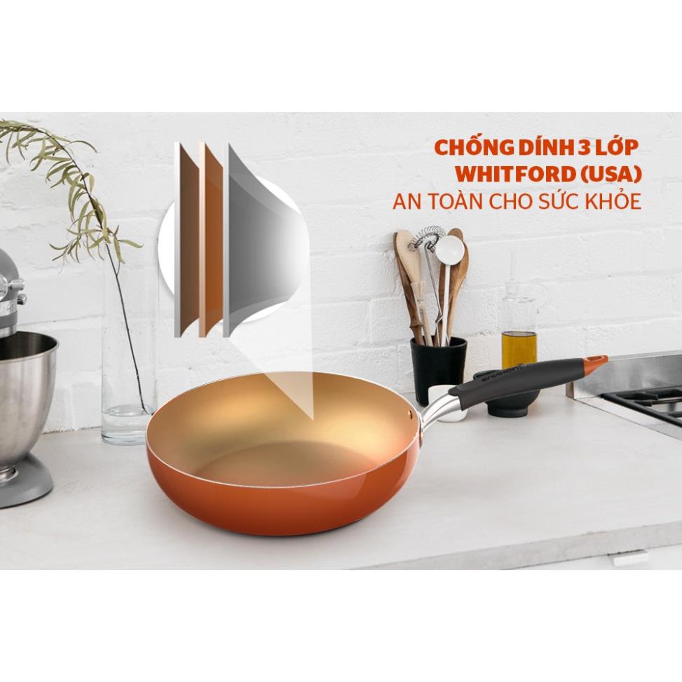 Chống dính Whitford (USA): Lòng chảo được phủ 3 lớp chống dính Whitford (USA) sáng màu vừa sang trọng, vừa chống dính cực tốt. Lớp chống dính này hoàn toàn không chứa PFOA, không phản ứng với thức ăn nên an toàn tuyệt đối cho sức khỏe.