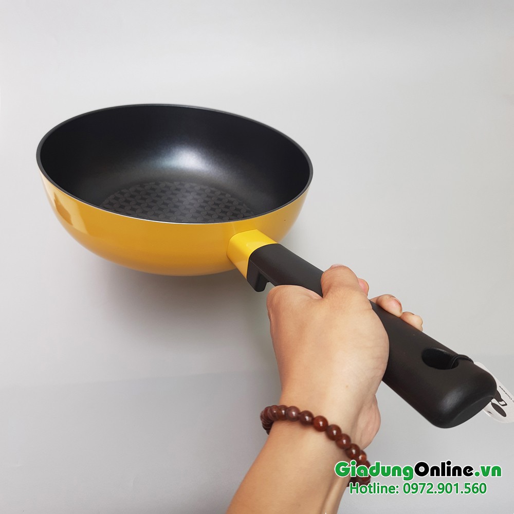 - Chất Liệu Aluminum; Bên trong phủ Titanium chống dính, bên ngoài phủ Ceramic
