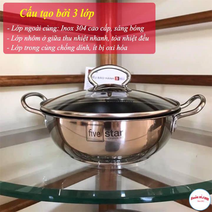 - Chảo Sâu Lòng Inox 304 FIVE STAR được thiết kế đặc biệt với 3 lớp