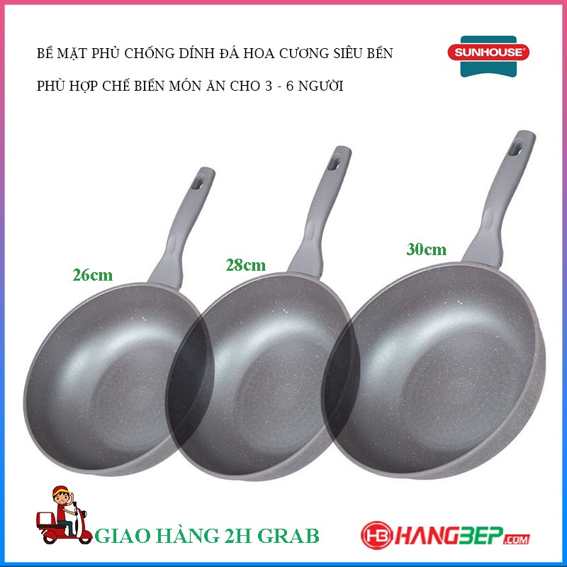 Chảo sâu lòng siêu bền đá đáy từ Sunhouse 26cm/28cm/30cm SHG1226MMA