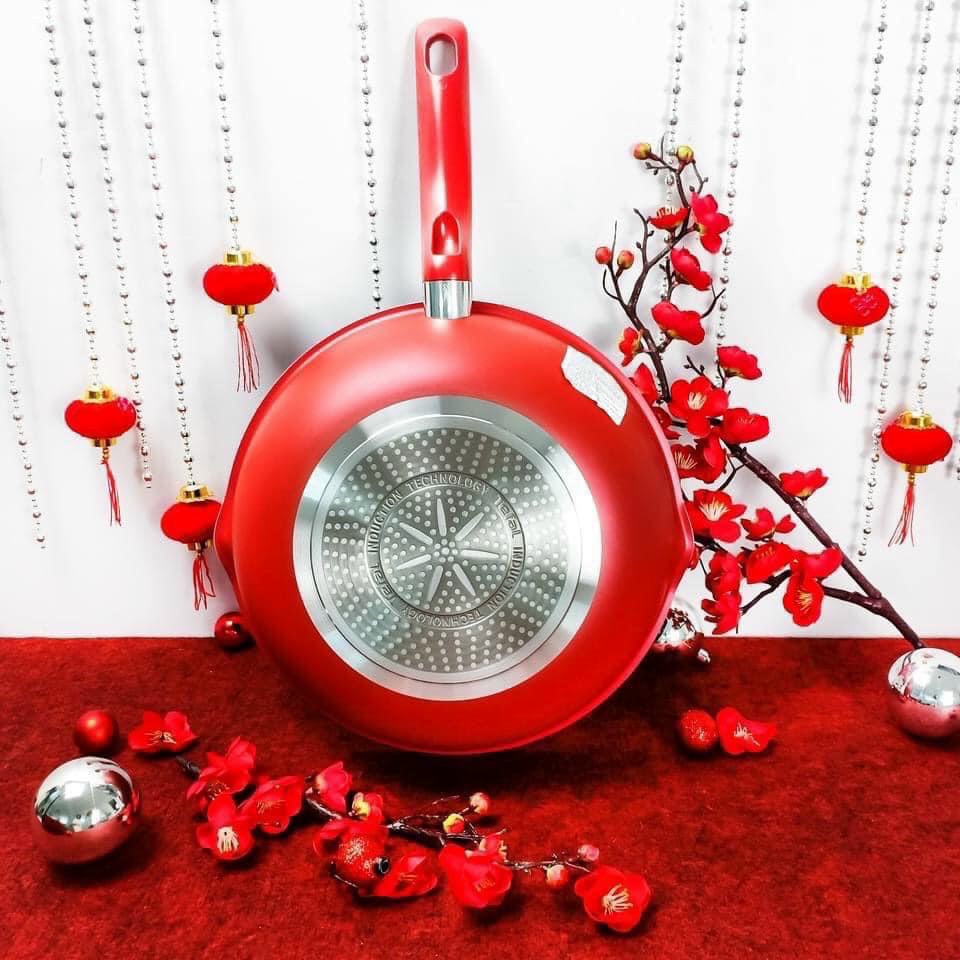👉 Chiếc chảo được thiết kế kiểu dáng và mầu đỏ theo phong cách Châu Âu rất sang trọng !