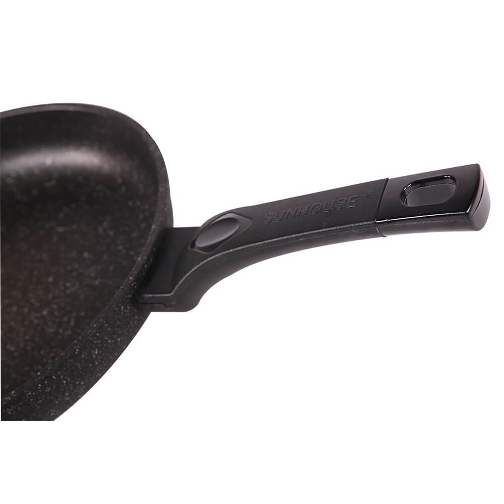Chảo siêu bền đá SUNHOUSE được tin dùng bởi công năng tuyệt vời, độ chống dính cao cùng với kết cấu bền chắc. Bề mặt phủ lớp đá Marble khiến cho tổng quan sản phẩm đẹp mắt, ấn tượng và nổi bật trong căn bếp hiện đại.