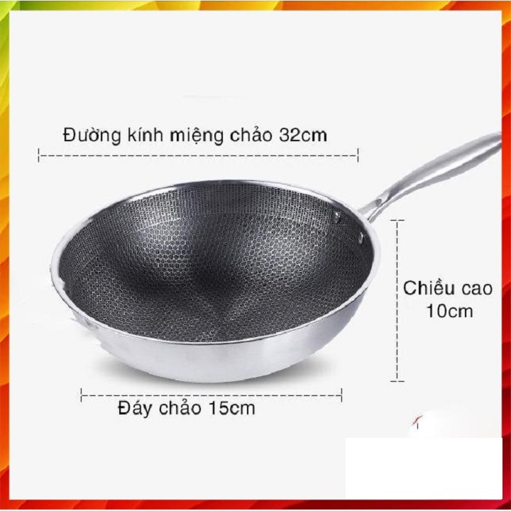 Chảo siêu chống dính sâu lòng lưới tổ ong 32cmChảo xào 32cm cỡ lớn hợp với mọi nhà, phù hợp để chiên ngập dầu, xào các món ăn thường ngày.