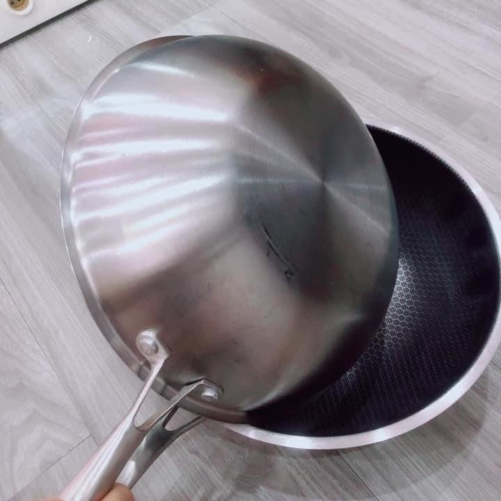 - Tay cầm bằng inox đúc rỗng, kỹ thuật đặc biệt ghép nối với thành chảo nên không nóng, nhẵn và sáng bóng nên dễ dàng rửa sạch và luôn đẹp, sang trọng.