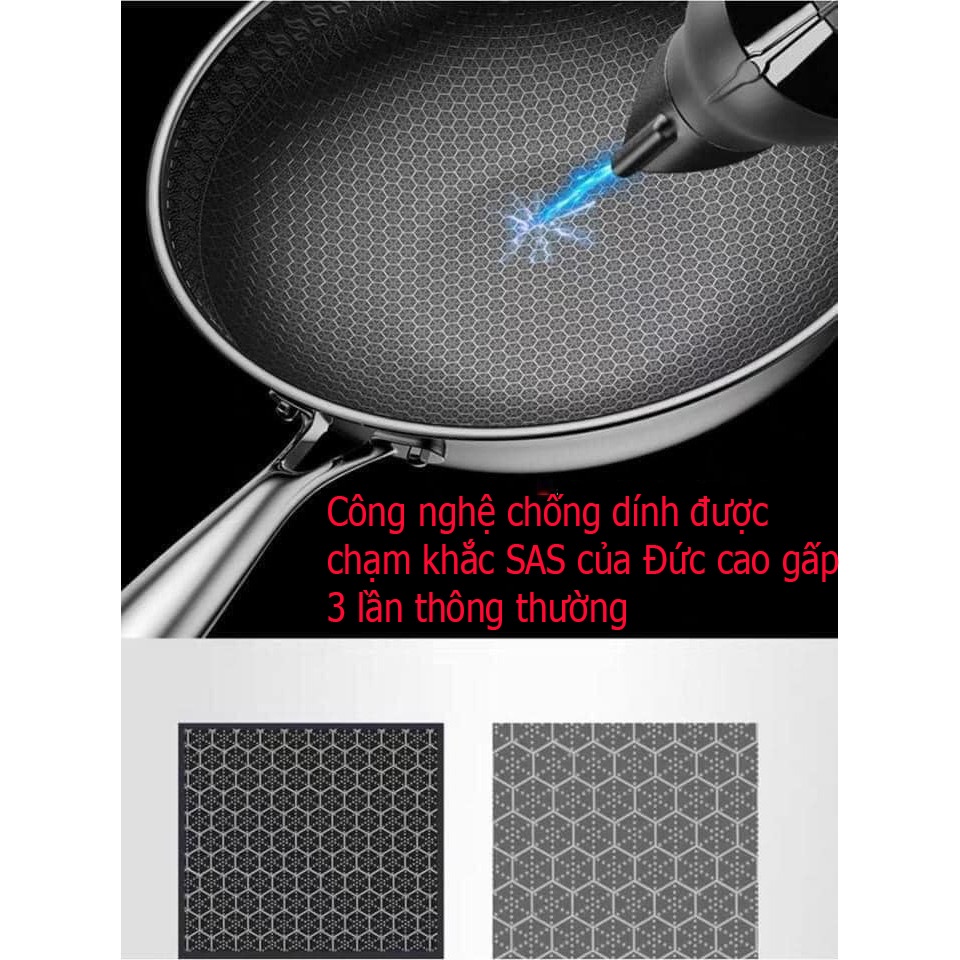 Thiết kế mặt chảo tổ ong, chống dính tự nhiên, xịn cực mà có dùng búi sắt rửa cũng ko bong trầy đâu ý.