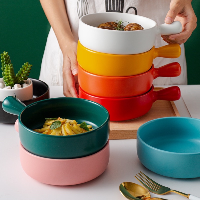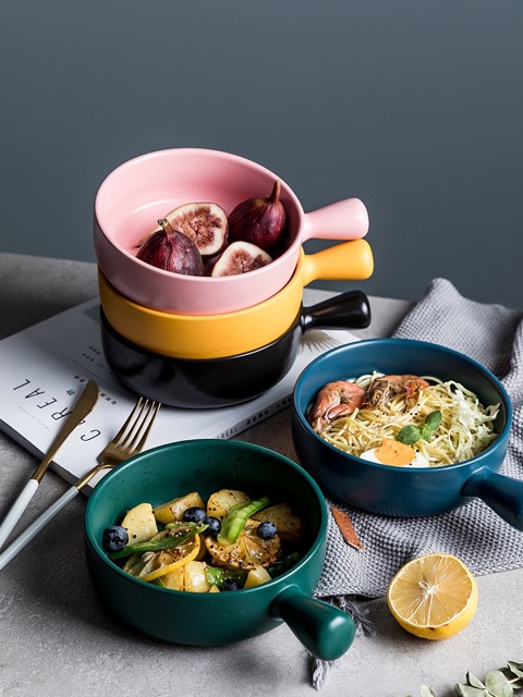 Nhà cửa & Đời sống > Dụng cụ nhà bếp > Chảo || Chảo sứ, tô sứ tròn có tay cầm decor bàn ăn, trang trí món ăn kiểu Bắc Âu, chảo tròn tay béoCòn hàng
