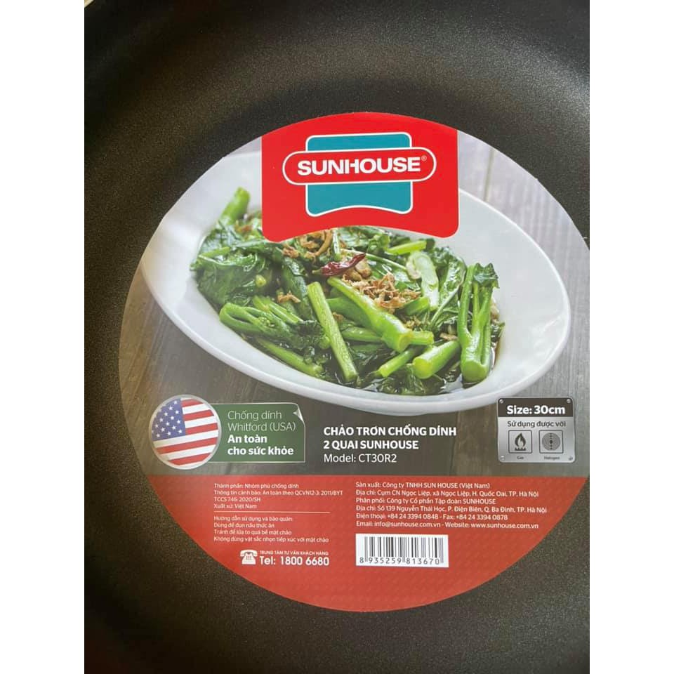 Chảo Sunhouse 30cm 2 quai CT30R2 - chảo chống dính đáy bằng chiên xào tiện dụng