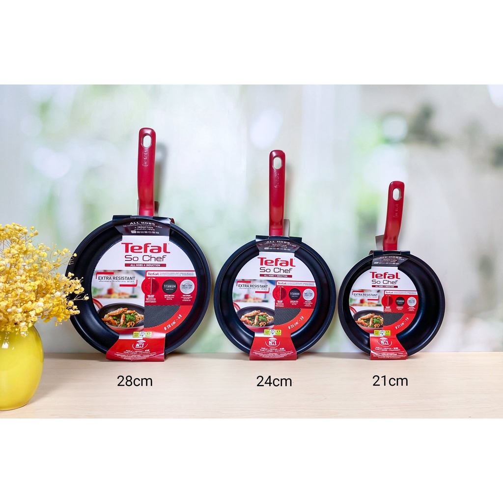 Chảo Tefal So Chef với 3 lớp chống dính Titanium bền bỉ, cao cấp chống trầy xước, hoàn toàn không chứa PFOA, không tạo ra bất kỳ phản ứng hóa học nào khi tiếp xúc thực phẩm.
