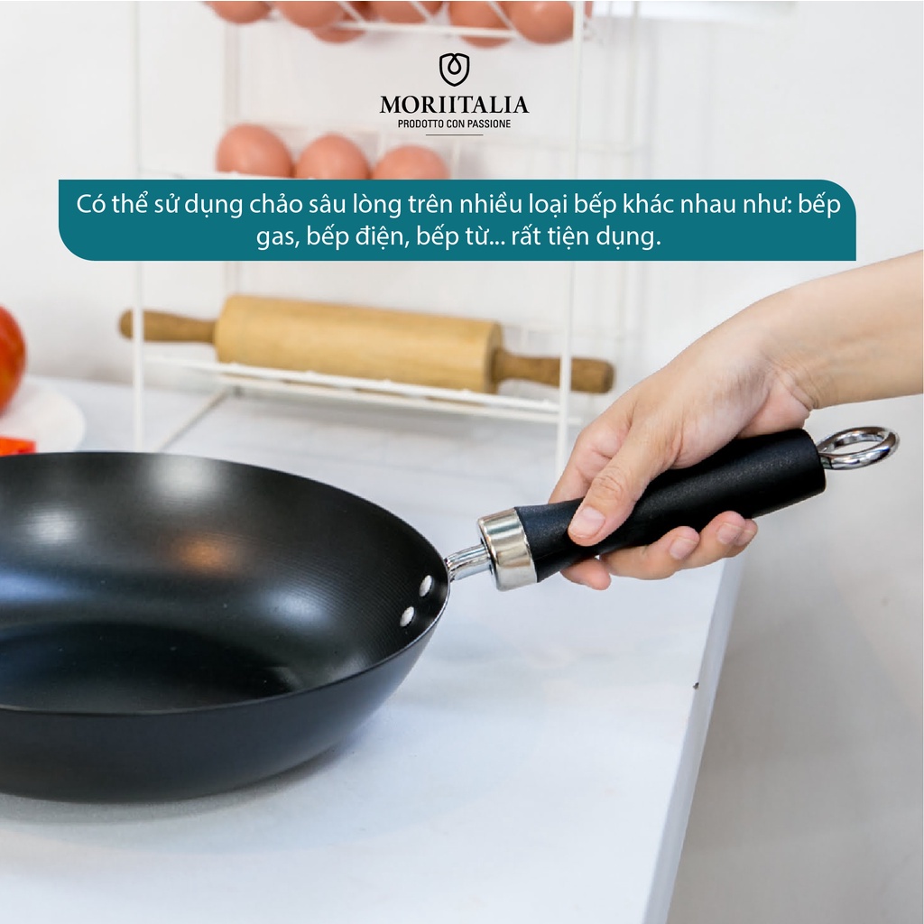 Giới thiệu Chảo thép carbon sâu Carlmann CD 28cm, thương hiệu Đức cao cấp, siêu chống dính và dùng được bếp từ Moriitalia CM008198
