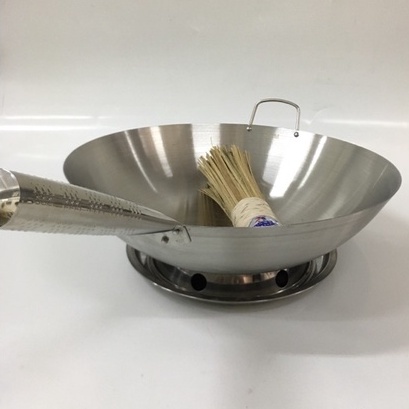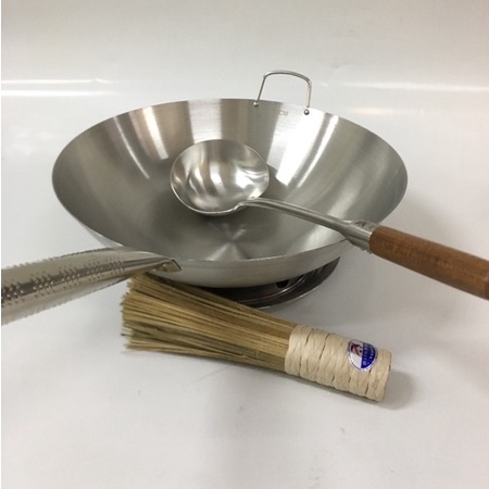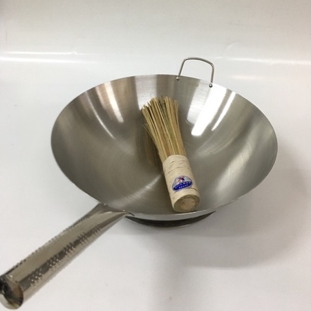 Chảo Thép Chống dính tay Cầm Inox Loại Màu Trắng Size 45cm ( dùng cho nhà hàng ) tặng chổi chùi chảo