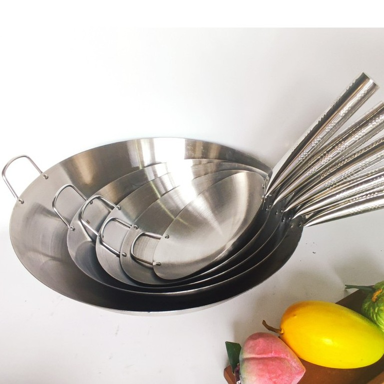 Nhà cửa & Đời sống > Dụng cụ nhà bếp > Chảo || Chảo Thép Chống dính tay Cầm Inox Loại Màu Trắng Size 45cm ( dùng cho nhà hàng ) tặng chổi chùi chảoCòn hàng