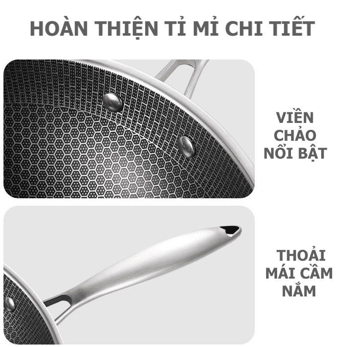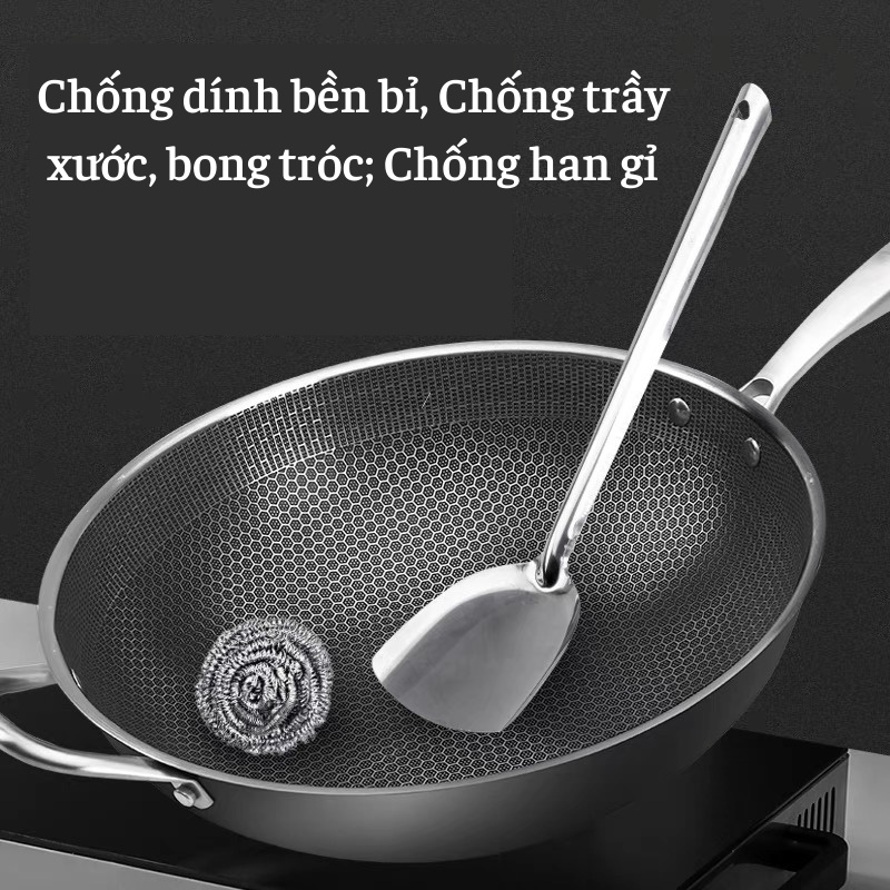 Chảo Tổ Ong 5 Lớp Chất Liệu Inox 304 Sâu Lòng Siêu Chống Dính 2 mặt khắc laser tổ ong 32cm