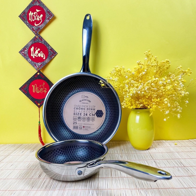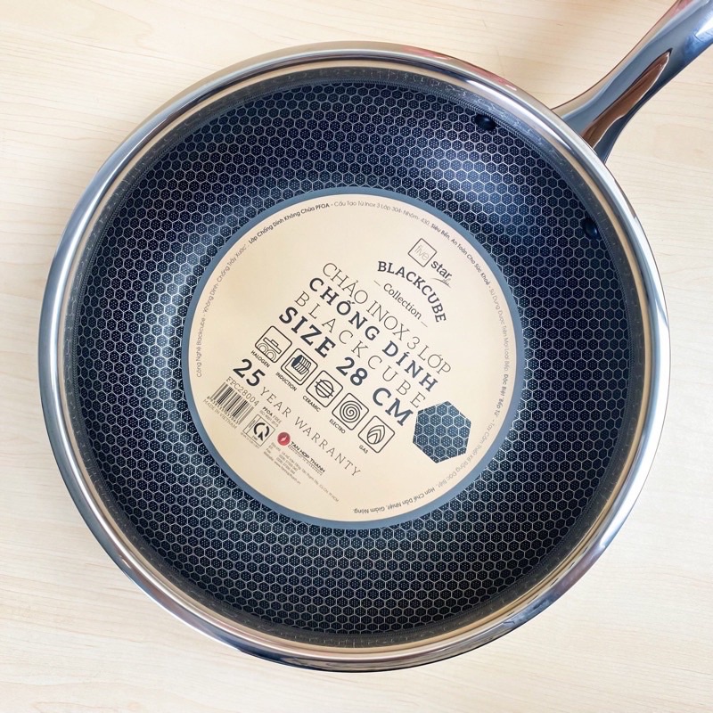 Em về chảo tổ ong black cube vốn làm điên đảo các chị em Yêu Bếp, vì vẻ đẹp sang chảnh khó cưỡng, khả năng chống xước siêu đỉnh. Công nghệ vân tổ ong làm dòng black cube luôn cực kỳ đắt đỏ. Vậy nên FiveStar cho ra mắt dòng chảo này làm bao chị em mê tít, chảo siêu đẹp mà giá cực hợp lý ạ!
