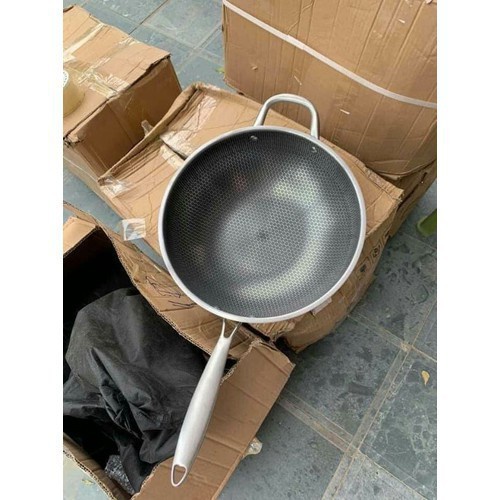 Thiết kế mặt chảo tổ ong, chống dính tự nhiên, xịn cực mà có dùng búi sắt rửa cũng ko bong trầy đâu ý.