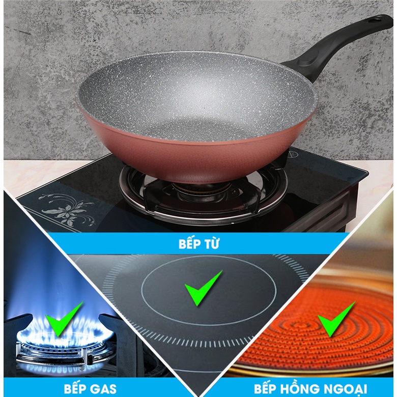 Giới thiệu Chảo tráng vân đá sâu lòng 32cm dùng được bếp từ No.101218