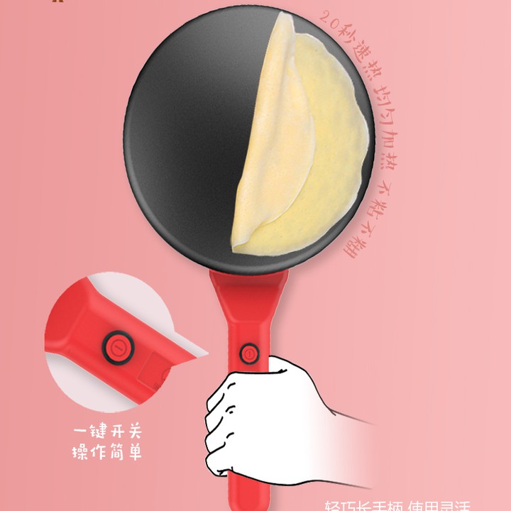 - Thao tác đơn giản và nhanh chóng, chỉ cần cắm điện và nhúng chảo vào dụng cụ đựng bột đi kèm sau đó nhấc lên là đã có chiếc bánh tráng ngon miệng.