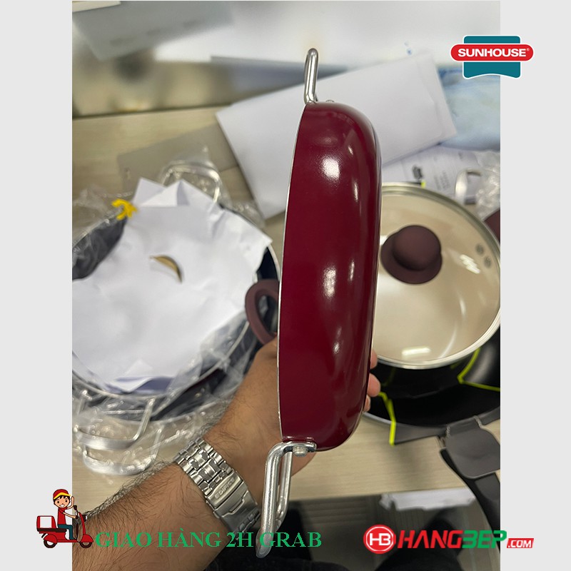 Chảo trơn chống dính 2 quai Sunhouse CT18R2 CT22R2 CT26R2 - Không sử dụng bếp từ
