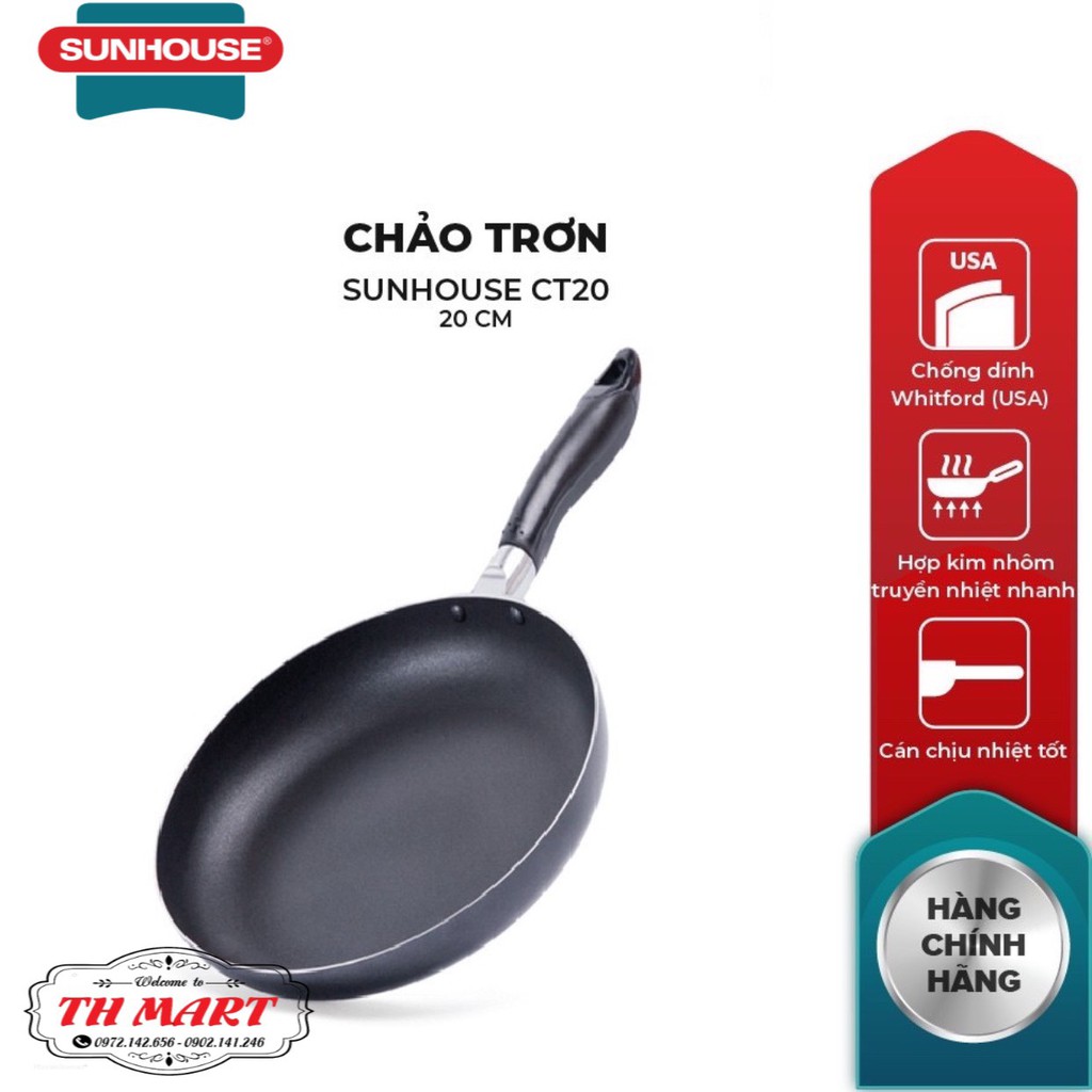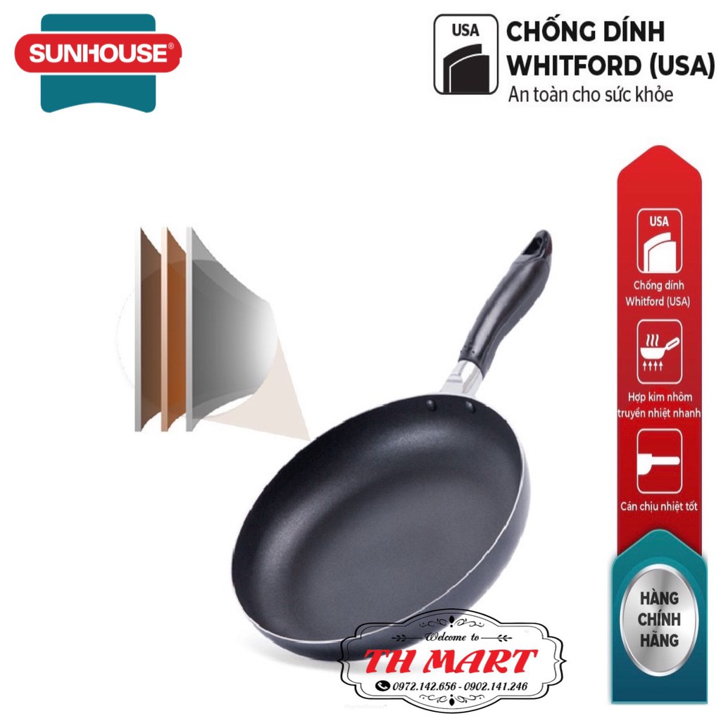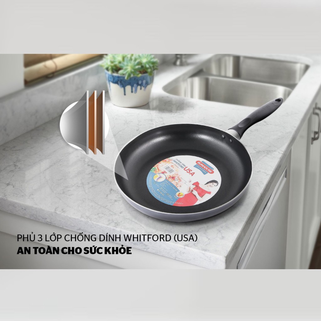 Chảo trơn chống dính sunhouse 3 lớp chống dính whitford usa tốt cho sức khỏe size 16-30
