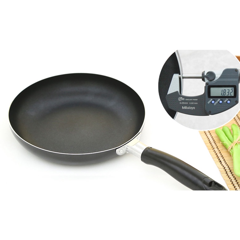 Được làm từ nhôm tấm cao cấp nguyên chất với độ dày 2.4mm hợp lý, chảo có khả năng bắt nhiệt nhanh chóng, lan tỏa nhiệt trải khắp toàn bộ chảo giúp thức ăn chín nhanh mà vẫn giữ nguyên được hàm lượng vitamin và dưỡng chất thiết yếu.