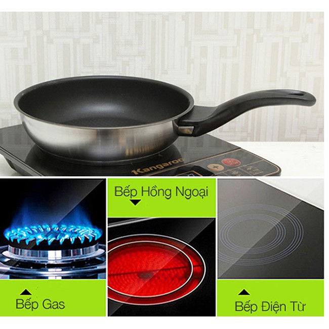 ☑ Đặc biệt hơn nữa là chảo không kén bếp, chảo sử dụng được trên tất cả các loại bếp như bếp gas, bếp từ và bếp hồng ngoại